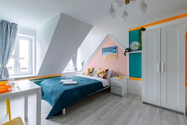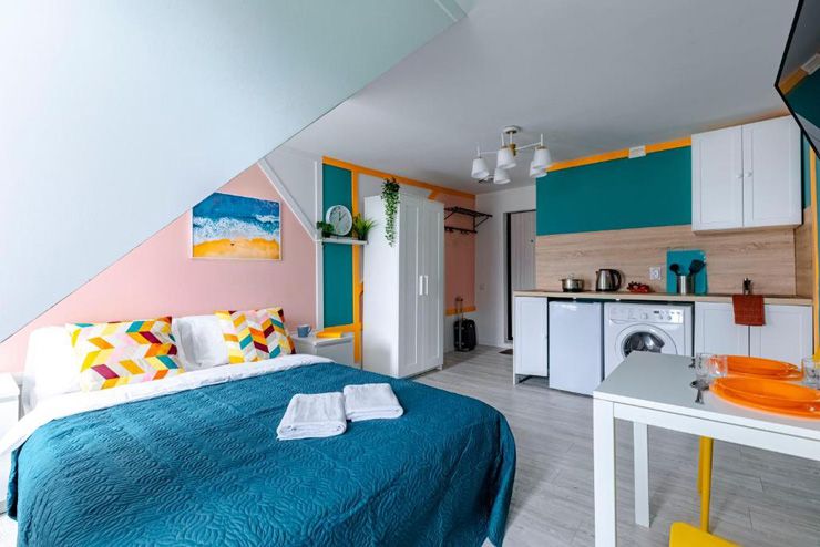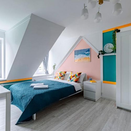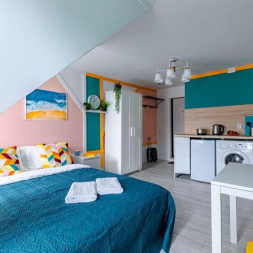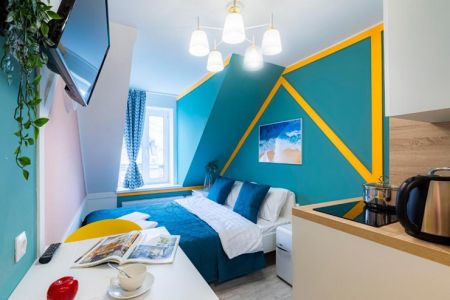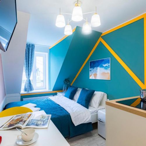 Апартаменты расположились на мансардном этаже шестиэтажного исторического жилого дома в Апраксином переулке. В распоряжении гостей однокомнатные 2-местные номера с современным интерьером. Среди удобств – кухонный уголок с электроплитой, электрочайником, микроволновой печью, в номере есть стиральная машина, телевизор и высокоскоростной интернет, а также предусмотрен персональный санузел с душем.